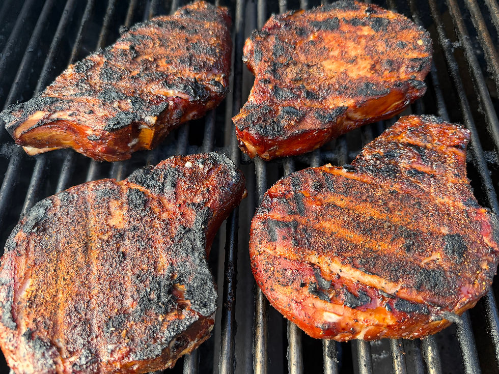 The key to this technique is timing & temperature management. Your pork chops need to move quickly from smoker to grill to avoid overcooking. Have your grill preheated & ready to go before you pull the chops from the smoker. The high heat will create an amazing crust while raising the internal temperature those final 5-10 degrees to reach the safe minimum of 145°F.